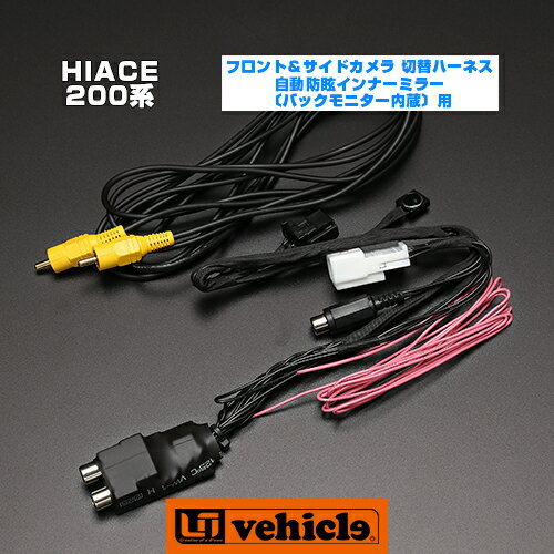 フロント/サイドカメラ切替ハーネスメーカーオプションで選択した純正のルームミラー(バックモニター内蔵自動防眩ミラー)にフロント/サイドカメラの映像を映すためのハーネスです。