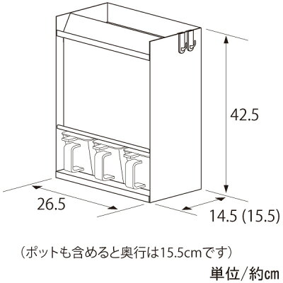 商品スペック サイズ 【本体】幅26.5×奥行14.5×高さ42.5cm (【梱包時】約29×18×高さ45cm) 重量 約3.6kg(梱包時:約4.1kg) 材質 ステンレス 付属品 ・フック×2 ・調味料ポット(スプーン付き)×3 備考 ・完成品 ・日本製(足立製作所) 開封後の返品はできません。