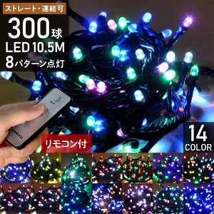 【5%OFFクーポン対象★9/5 0:00〜9/6 23:59】 イルミネーション LED 屋外 300球 10.5m イルミネーションライト コンセント式 リモコン 8パターン点灯コントローラー付き ストレートライト LEDライト クリスマス クリスマスツリー ハロウィン 飾り 装飾