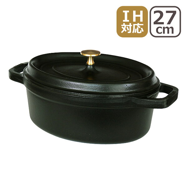 結婚のお祝いや新築祝いなどの贈り物ギフトにも大人気! アイテム ピコ ココット オーバル 27cm カラー ブラック サイズ 直径:27cm / 幅(取手含):34cm 深さ:約10cm / 高さ(フタ含):15.5cm 容量/重量 3.2L/4.5kg 素材 ホーロー 商品について ストウブの加工はお鍋をひっくり返し、3本の棒で支えながら行います。