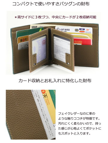 商品説明 スタッフおすすめ!4カラー 本革のような2つ折り財布 コンパクトなサイズで触り心地が気持ちい財布です 小銭れなしですが、十分使っていただけるデザインです。