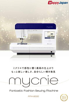 【ミシン】【送料無料】【5年保証】 Happy Japan ハッピージャパン コンピューターミシン mycrie ミクリエ FFH-8000 ワイドテーブル・フットコントローラー標準装備【ミシン本体】【みしん】