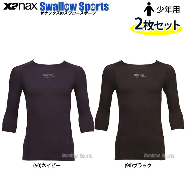 【あす楽対応】 【5日:全品ポイント8倍:スーパーセール】野球 ザナックス XANAX ウエア コンプリート アンダーシャツ 接触冷感 夏用 ローネック 丸首 七分袖 少年用 BUS-771J 2枚セット ウェア ウエア トレーニング 練習着 春夏 少年野球 野球用品 スワロースポーツ 小学生