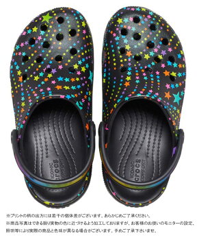 【あす楽】 クロックス crocs 女の子 子供靴 キッズ ジュニア サンダル クラシック ディスコ ダンスパーティー キューティークロッグ サボサンダル 厚底サンダル カジュアルシューズ 208086 0C4 ブラック/マルチ 黒 星柄 【送料無料】 evid |5